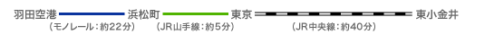 • モノレール:東京モノレール 羽田空港駅から浜松町駅 約22分