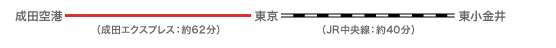 • 成田エクスプレス:成田空港から東京駅 約62分 (JR特急成田エクスプレス利用)