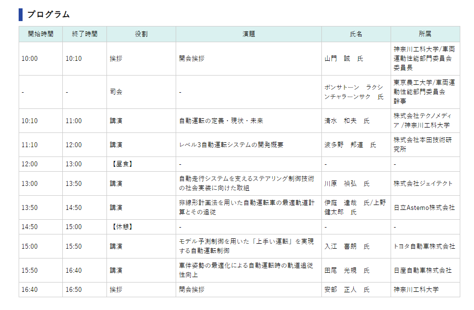 2021年9月10日(金),公益社団法人自動車技術会 ⾞両運動性能部⾨委員会 主催 No.03-21シンポジウム「自動運転時代の車両運動制御技術」が開催されます.