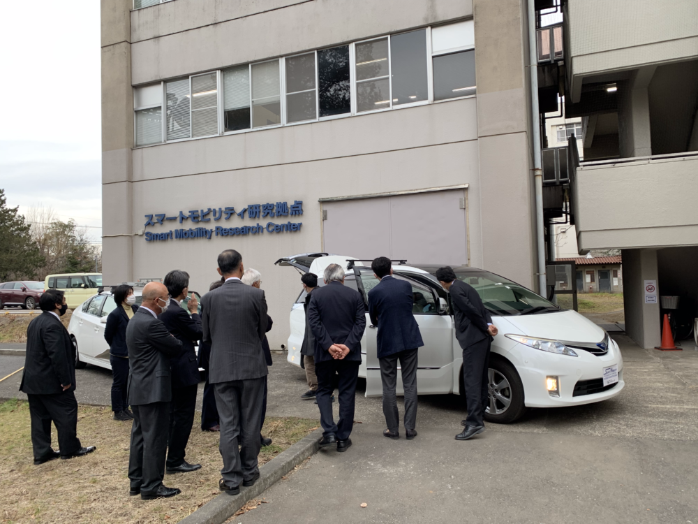 むさし府中商工会議所の方々が小金井キャンパス・スマートモビリティ研究拠点を視察されました。 ドライビングシミュレータおよび自動運転機能を装備した実験車両を紹介しました。