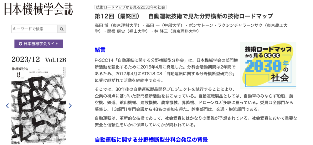 日本機械学会誌,2023年12月号,Vol.126.