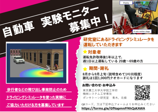ドライビングシミュレータを使った実験にご協力いただける方を募集中です