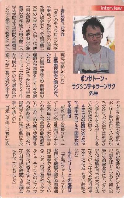 日刊自動車新聞にポンサトーン教授のインタビューが掲載されました