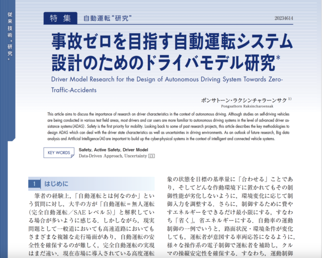 自動車技術会誌にポンサトーン教授の記事が掲載されました
