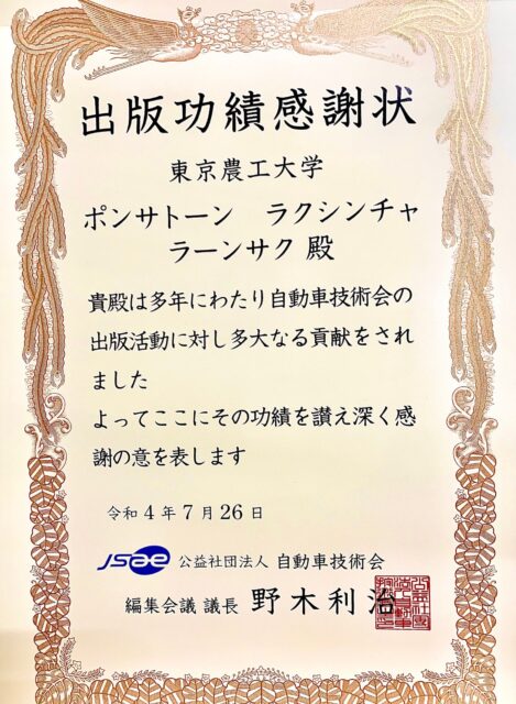 受賞論文“Proactive Braking Control and Collision Avoidance Assistance System for Passing a Blind Spot in Intersection”
