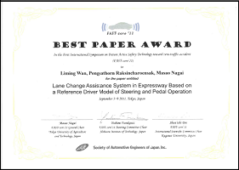 受賞論文「Lane change Assistance System in Expressway Based on a Reference Driver Model of Steering and Pedal Operation」