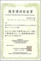 受賞論文「Investigation of Inattentive Driving Estimation Method by Using Longitudinal and Lateral Driver Operational Models」