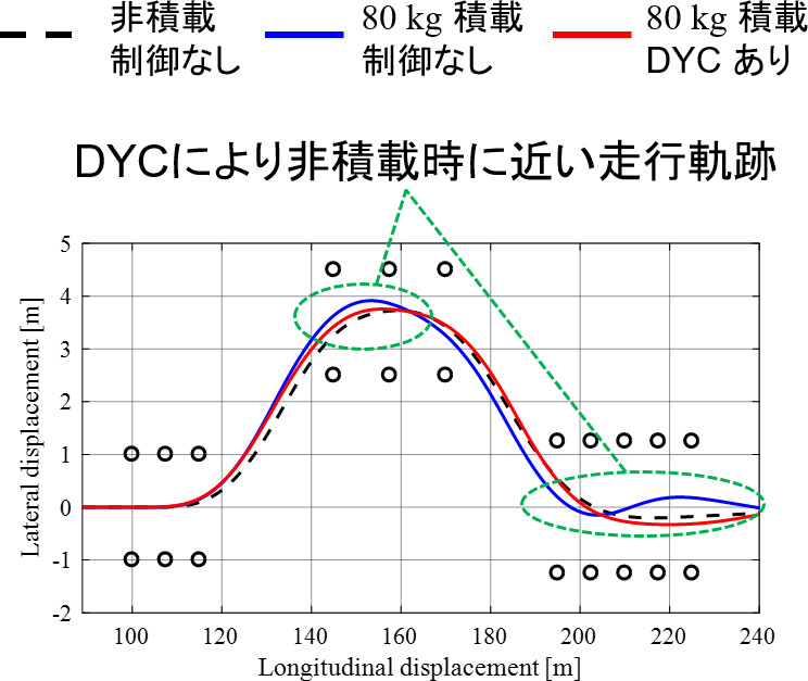 次世代の電気自動車は、走行時の消費エネルギーの観点から軽量化と走行抵抗の低減が求められる。これらの自動車は、重い積載荷重による車両運動特性の変化が通常の乗用車に比べて大きく、空車時に比べて操縦安定性が低下しやすいという問題点がある。本研究では、この問題を克服するため、電気自動車の構造的特徴であるインホイールモータを活かして、左右輪の独立駆動力配分によるヨーモーメント、すなわち直接ヨーモーメント制御(DYC)を用い、重量変化に対する運動特性の感度を低減する運動制御システムを設計した。ドライビングシミュレータ実験を行い、提案手法によって、非制御時に比べ、緊急回避試験における車両挙動の安定性および運転者の操舵余裕度が向上することを確認した。