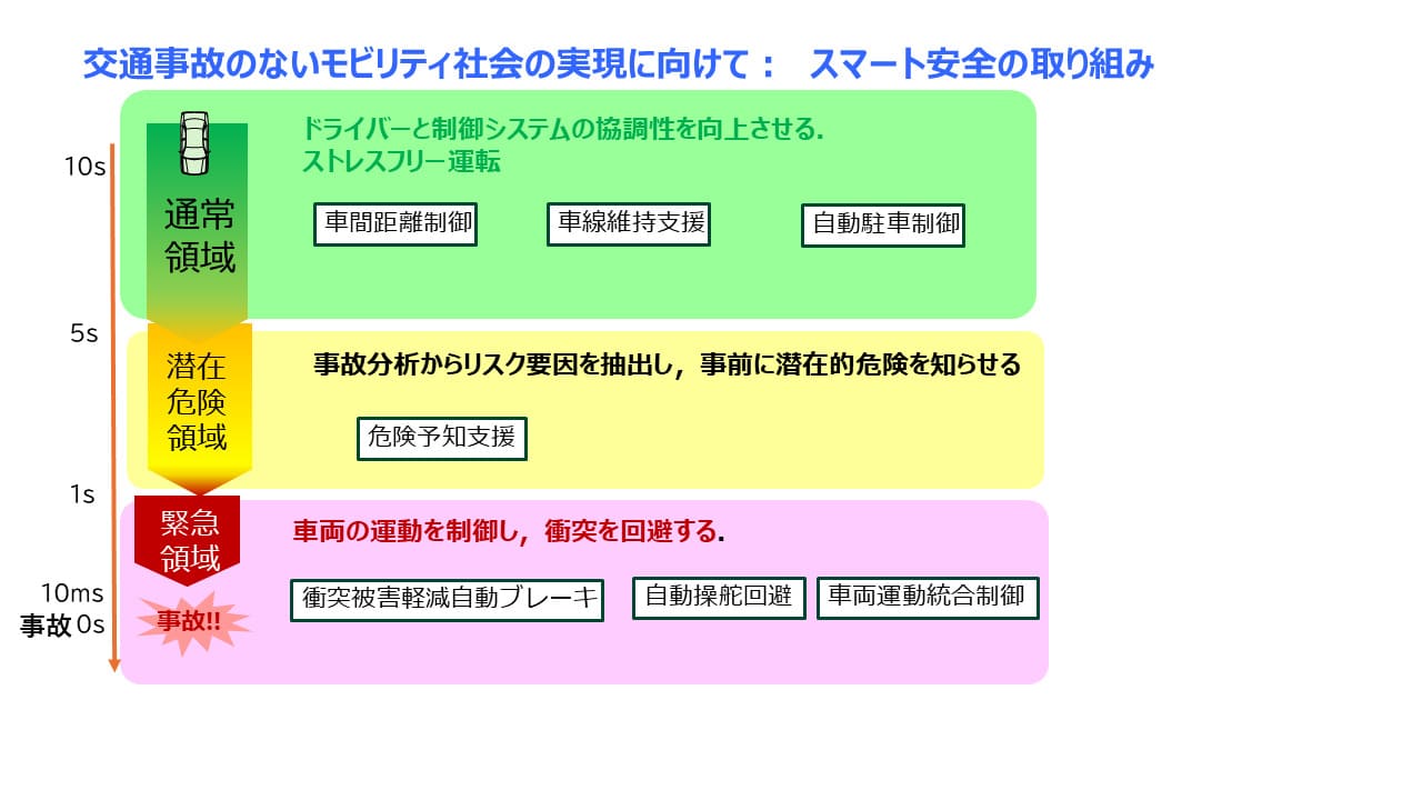 事故のない安全安心なモビリティ社会の実現に向けて、「事故のあとの保険から事故を起こさない保険へ」という新しい概念のもと、ドライブレコーダーによって収集された交通ビッグデータを最大限に活用し、交通事故の予兆検知や交通事故未然防止につながるサービスをモビリティ社会に提供することが求められている。
